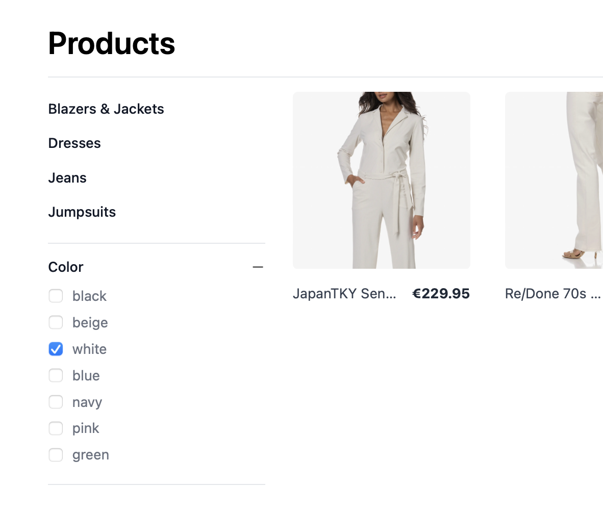 Coco and Toyin implemented the first version of the sidebar for PLP, for filtering products.