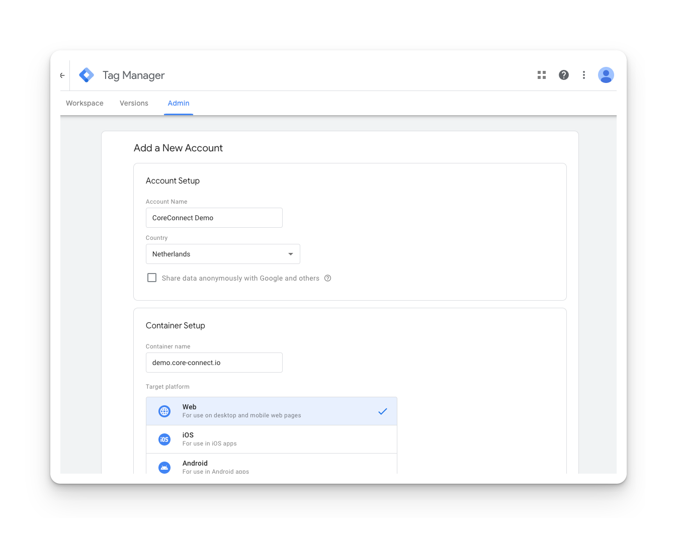 Follow these steps to set up Google Tag Manager: