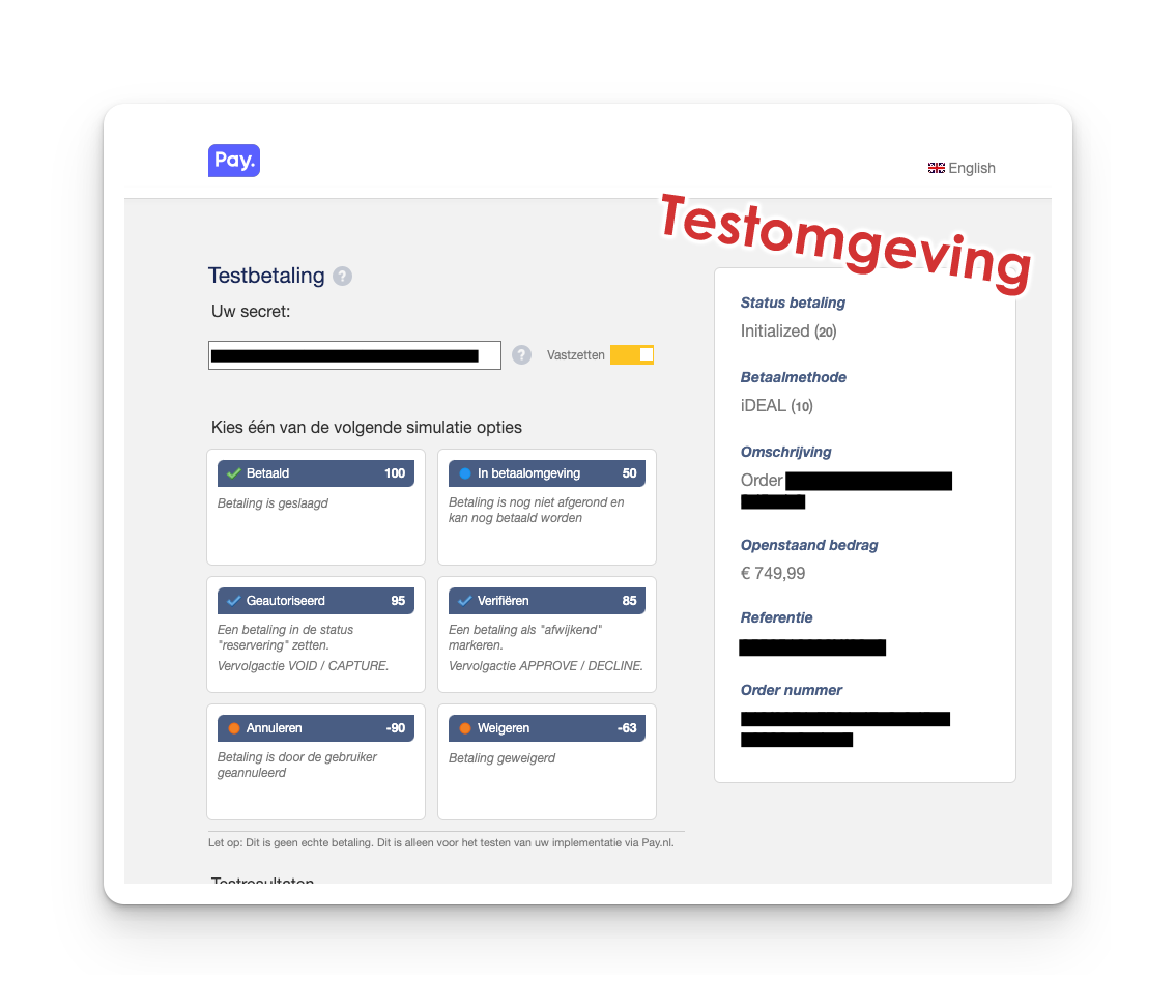 Check incoming payments in PayNL dashboard